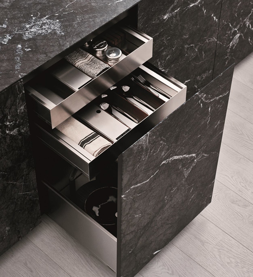 N_Elle有多种选择——包括木材、单色层压板、光泽漆、陶瓷和大理石,而且采用了新的硅酮复合工作台面。
