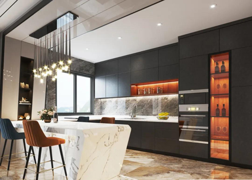 一推厨房门,所呈现的意境与美感印入眼帘,在此空间中洗切一饭一蔬,烹饪美食佳肴,让生活在烟火中体验细微之处迸发的欣喜感,在品尝酸甜苦辣的百味中沁入人生的幸福感。